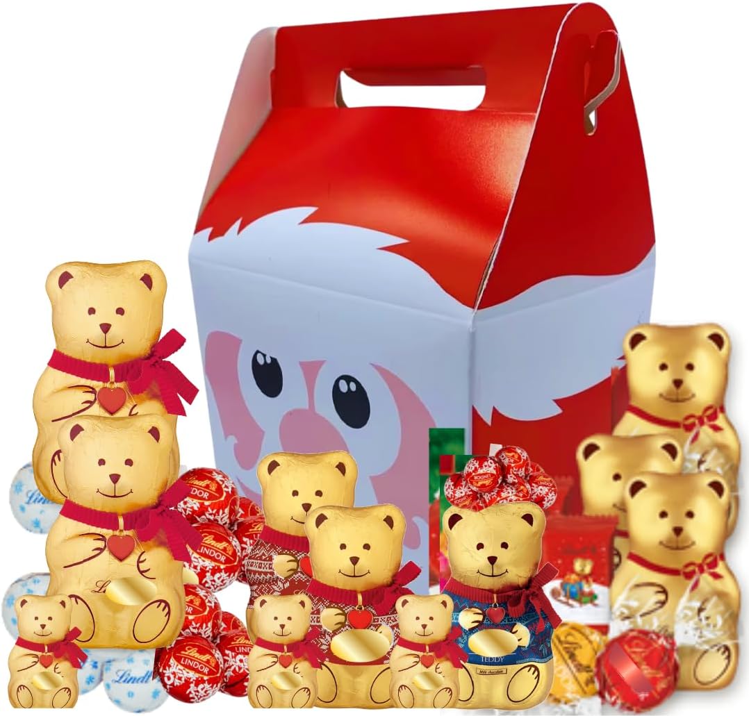 • Linddt Chocolate Gifts in Gift Box:Premium Linddt Christmas Chocolate Assortment Enjoy a festive selection of authentic Swiss chocolates including the iconic Milk Chocolate Teddy 3D, Chocolate Santa, Christmas Reindeer, and Lindor Milk Milk Chocolate Truffles — a luxurious mix for all ages.