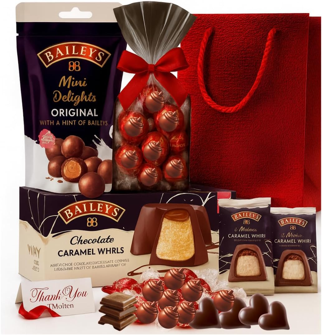 • Baileys Chocolate Hamper: A generous selection of rich and creamy Baileys and Linddt chocolates, beautifully presented in an elegant gift box—ideal for effortless gifting.