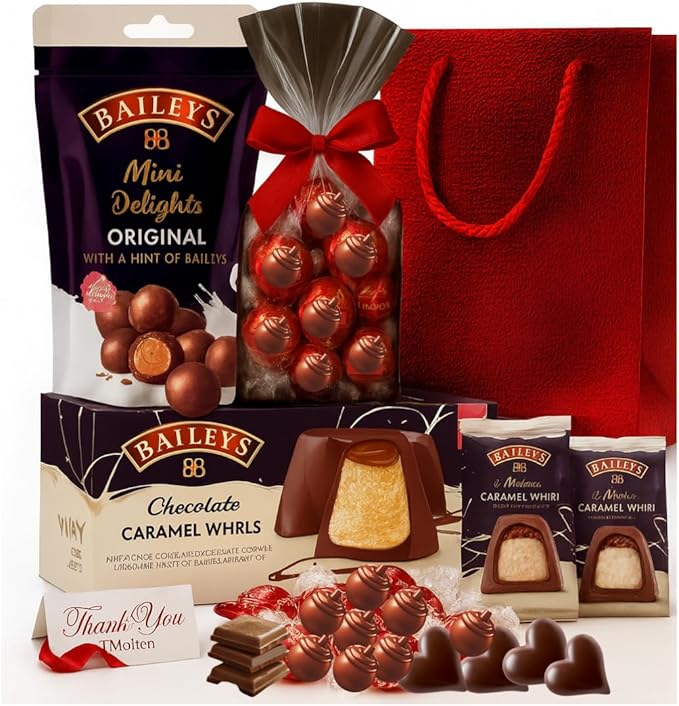 Baileys Gift Set Mother’s Day Gifts For Her Baileys Chocolate Gift Hamper 425g Baileys Original Irish Cream Truffles Lint Assorted & Heart Chocolates New Baileys Mallow Caramel Chocolate Gift for Her Mother’s Day Gifts Birthday Gifts Presents for women Treat someone special to a moment of pure indulgence with this Luxury Baileys Gift Set, a beautifully curated 425g chocolate hamper filled with the finest Baileys and Linddt chocolates. Designed for lovers of smooth Irish cream and melt-in-the-mouth luxury chocolate, this gift hamper includes a rich selection of Baileys Original Irish Cream Truffles, New Baileys Mallow Caramel, and premium LindDt assorted chocolate truffles—creating the ultimate chocolate experience.