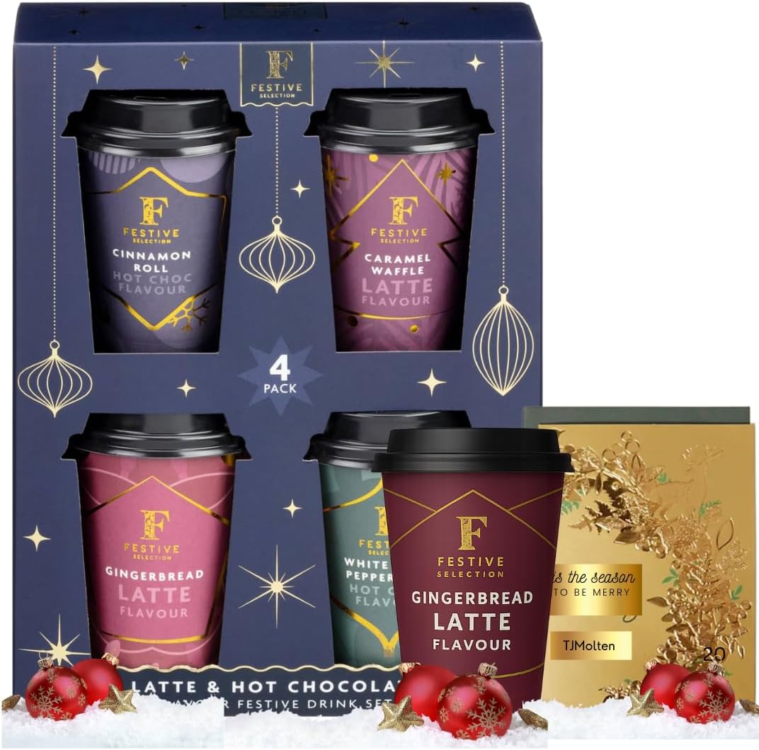- HOT CHOCOLATE & LATTE GIFT SET – Celebrate the season with a luxury assortment of 4 rich, indulgent hot chocolate and latte flavours. Perfect for cosy nights, Christmas mornings, or festive movie marathons