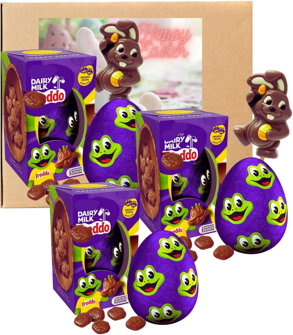 - 🎁 Ideal Easter Egg Hamper Addition: Make your Easter Egg Hamper stand out with the inclusion of our Cardbury Dairy Milk Freddo Eggs. Pack of three medium easter eggs, a thoughtful gift for friends, family, or coworkers.
